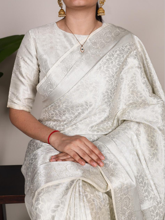 Kanjivaram Cream Beauty – Crafted for Your Special Day
