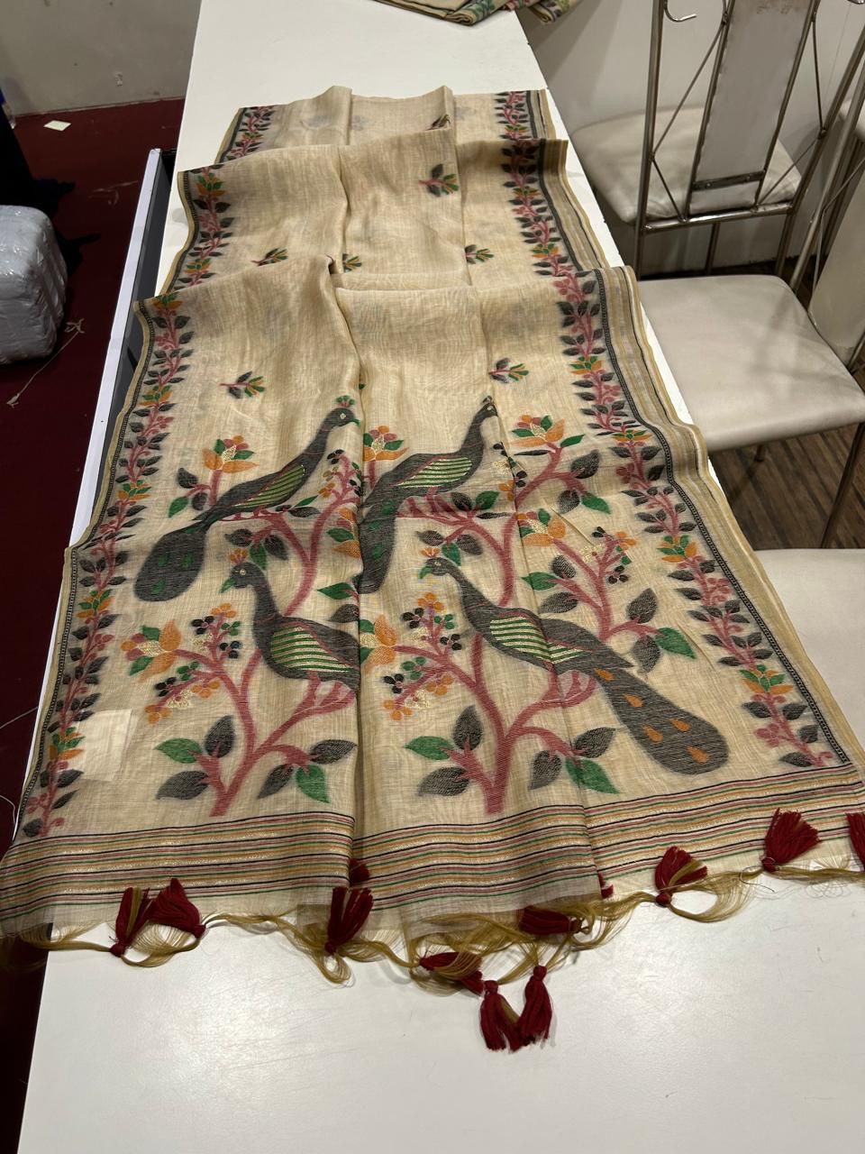 ✨ Design: Classic peacock & Jamdani-style weaving pallu for a regal look