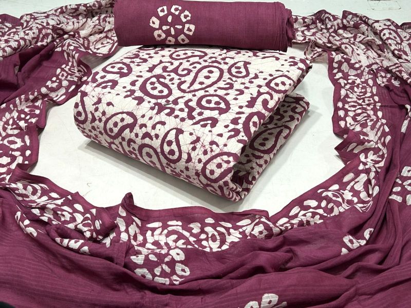 Wax Batik Pure Cotton Dress Material-Purple